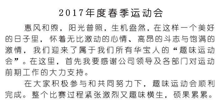 2017年度春季運(yùn)動(dòng)會(huì) 上一個(gè):2017第八屆中原(鄭州)國際超市商品-暨家居時(shí)尚用品展覽會(huì) 下一個(gè):新樂華寶塑料制品有限公司 對(duì)“獻(xiàn)愛心”活動(dòng)總結(jié)的通知
