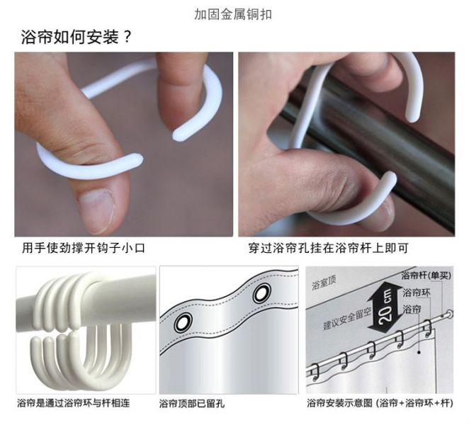 【材質(zhì)】: EVA,環(huán)保,不含鄰苯二甲酸鹽,對人體沒有危害 【規(guī)格】:140*200cm, 170*200cm, 【特點(diǎn)】:浴簾美觀高雅,時尚個性,防水,帶給您非凡的品味生活